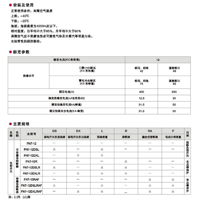 FN7-12DR型交流高壓負荷開關(guān)是一種新型產(chǎn)氣式戶內(nèi)高壓負荷開關(guān),適用于交流50Hz,額定電壓12kV的三相交流電力系統(tǒng)中,作為開斷負荷電流及關(guān)合短路電流之用。