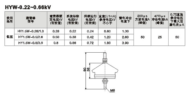 HY1.5W-0.22~0.66KV 氧化鋅避雷器