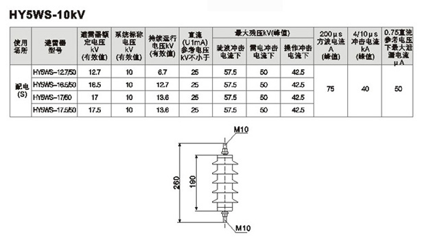 HY5WS-17/50(10kv)  氧化鋅避雷器